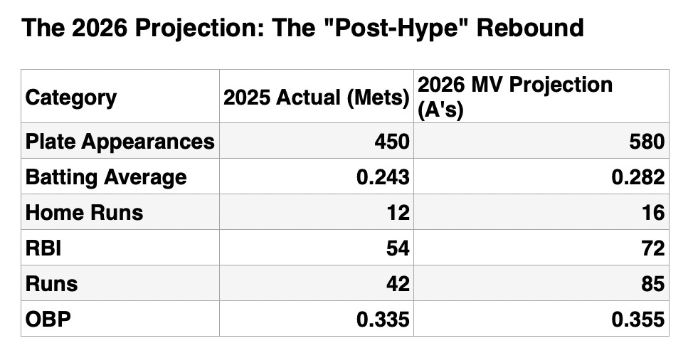The Lineup Protection: The A’s aren’t the “triple-A squad” of years past. McNeil joins a core that features Brent Rooker (36 HR power), Lawrence Butler (breakout speed/power), and elite prospects like Jacob Wilson and Nick Kurtz.